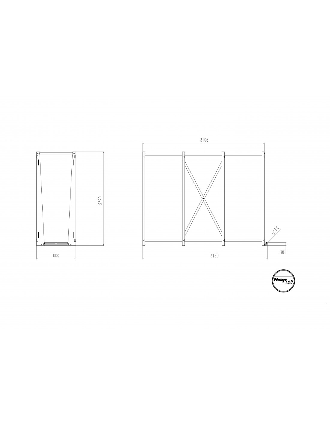 Encombrement 3180x1000x2390mm
