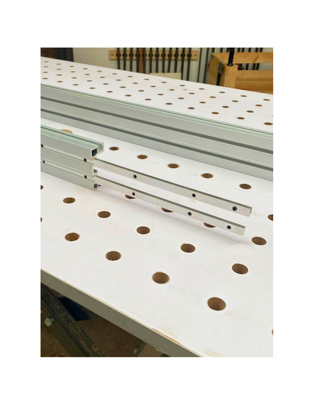 Fabriqué pour s’intégrer parfaitement dans les profilés en aluminium en L, ce connecteur garantit un alignement précis et stable entre les deux rails assemblés. Il permet ainsi de créer un guide de coupe ou de positionnement continu, idéal pour les scies radiales, perceuses à colonne ou tables d’atelier.