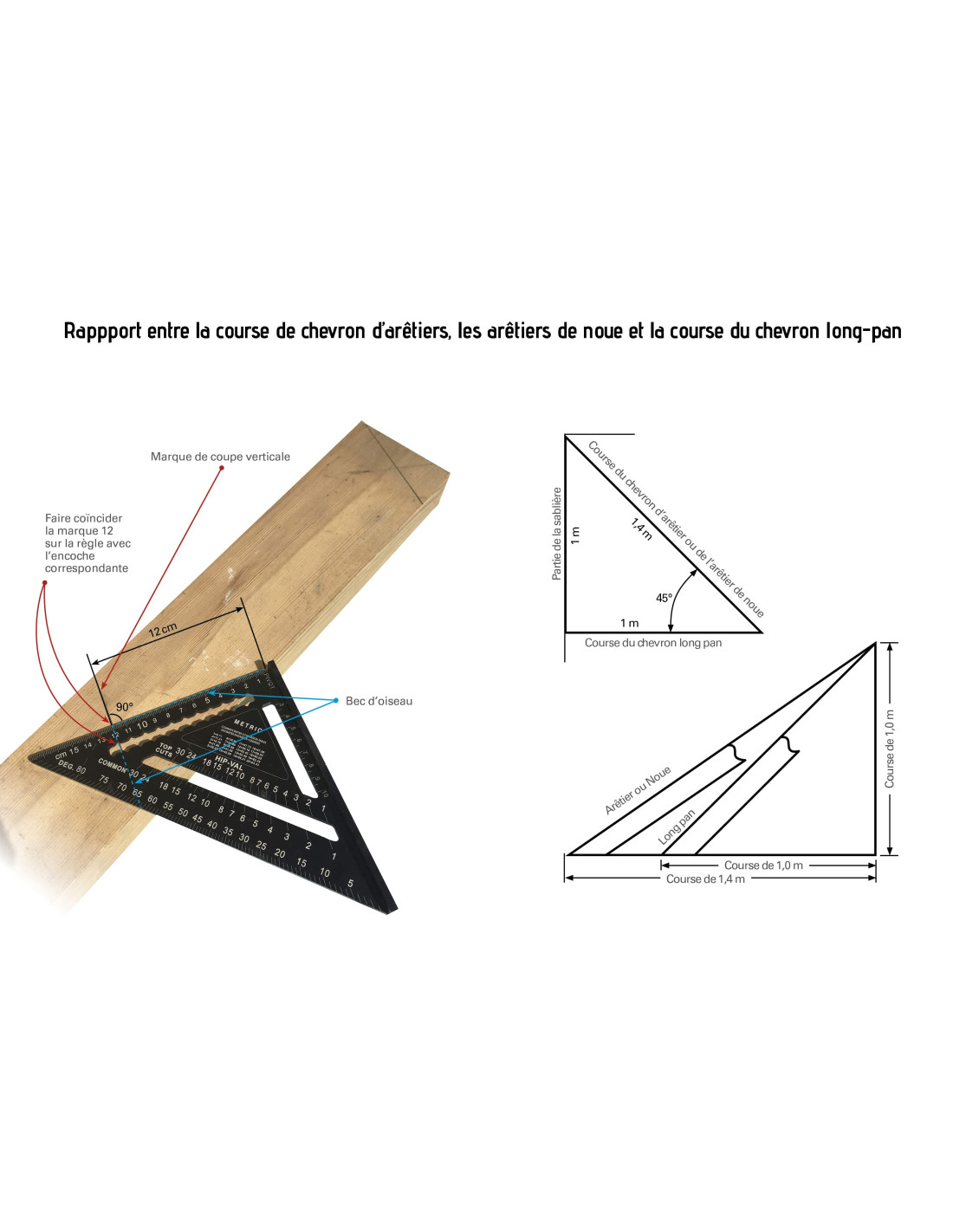 Les équerres de charpentier américaines (souvent appelées carpenter’s ou rafter squares) sont des outils emblématiques de la charpenterie nord-américaine. Elles ont des caractéristiques et des usages un peu différents des équerres européennes classiques. Contrairement aux équerres simples, elles sont remplies de repères et tables intégrées souvent en pouce (en mm et en français pour les nôtres contrairement à celles d'importation). Elles sont devenues très populaires en Europe également. Celle-ci a une taille de 175mm.