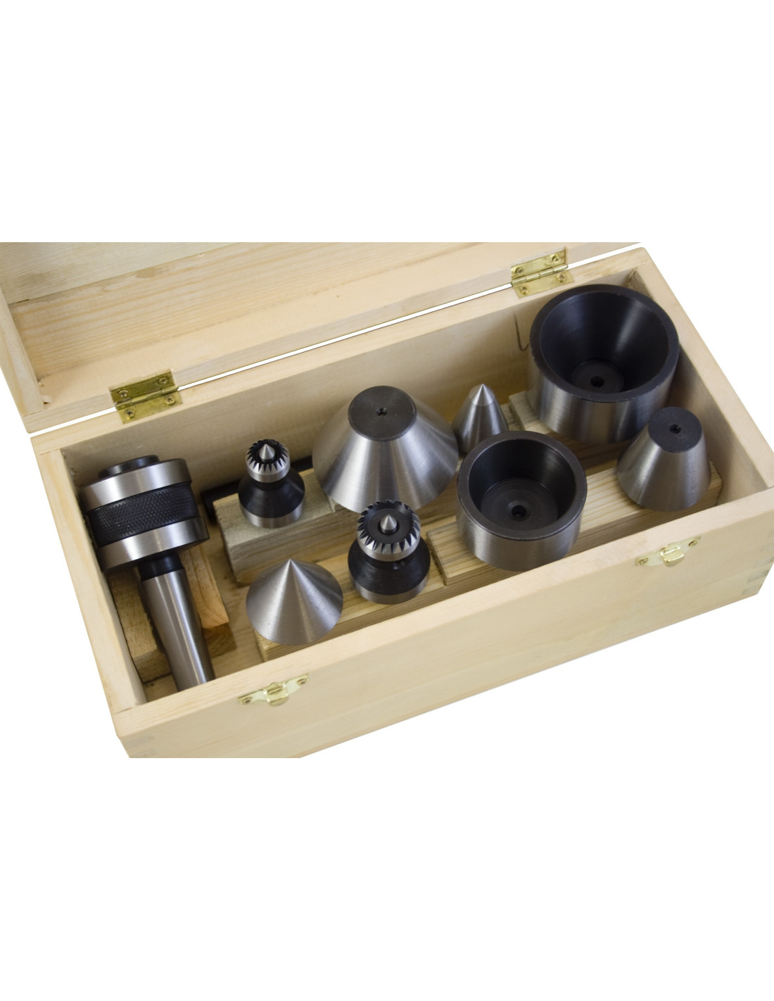 Livré avec un chasse-outil, ce coffret constitue une solution complète pour équiper efficacement la contre-pointe d’un tour à bois.