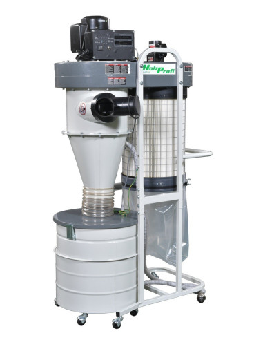 L'aspirateur à copeaux mobile R150TE-MONO est équipé d'un système de filtration double avancé pour une gestion optimale des poussières dans vos ateliers. La première étape de filtration, sous forme de cyclone, utilise la centrifugation pour séparer les particules de bois en suspension de l'air. La seconde étape passe par une cartouche filtrante et un sac en PVC pour capturer les poussières résiduelles, réduisant l'émission de poussières à moins de 1 μg/m³. Cet aspirateur monophasé de 110 litres est également doté d'une télécommande pour une mise en route pratique, d'un avertisseur de remplissage et d'un système de décolmatage électrique temporisé pour une maintenance simplifiée.