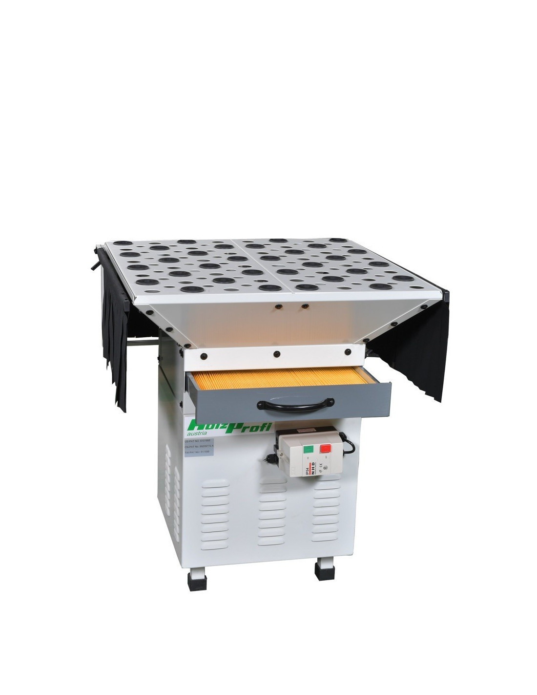 Cette table aspirante est spécialement conçue pour récupérer les fines poussières de ponçage lors de vos travaux de menuiserie, garantissant ainsi un espace de travail propre et sécurisé. Équipée de rideaux escamotables sur tout son pourtour, elle réduit considérablement la dispersion des poussières dans l'air, améliorant ainsi l'efficacité de l'aspiration. La table dispose également d'un bac de récupération doté d'un filtre plissé remplaçable, facile à entretenir pour une utilisation continue. Idéale pour les ateliers de menuiserie, elle permet de maintenir un environnement de travail sain et conforme aux normes de sécurité.