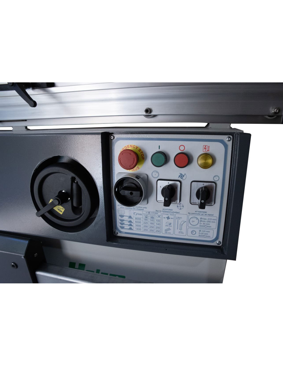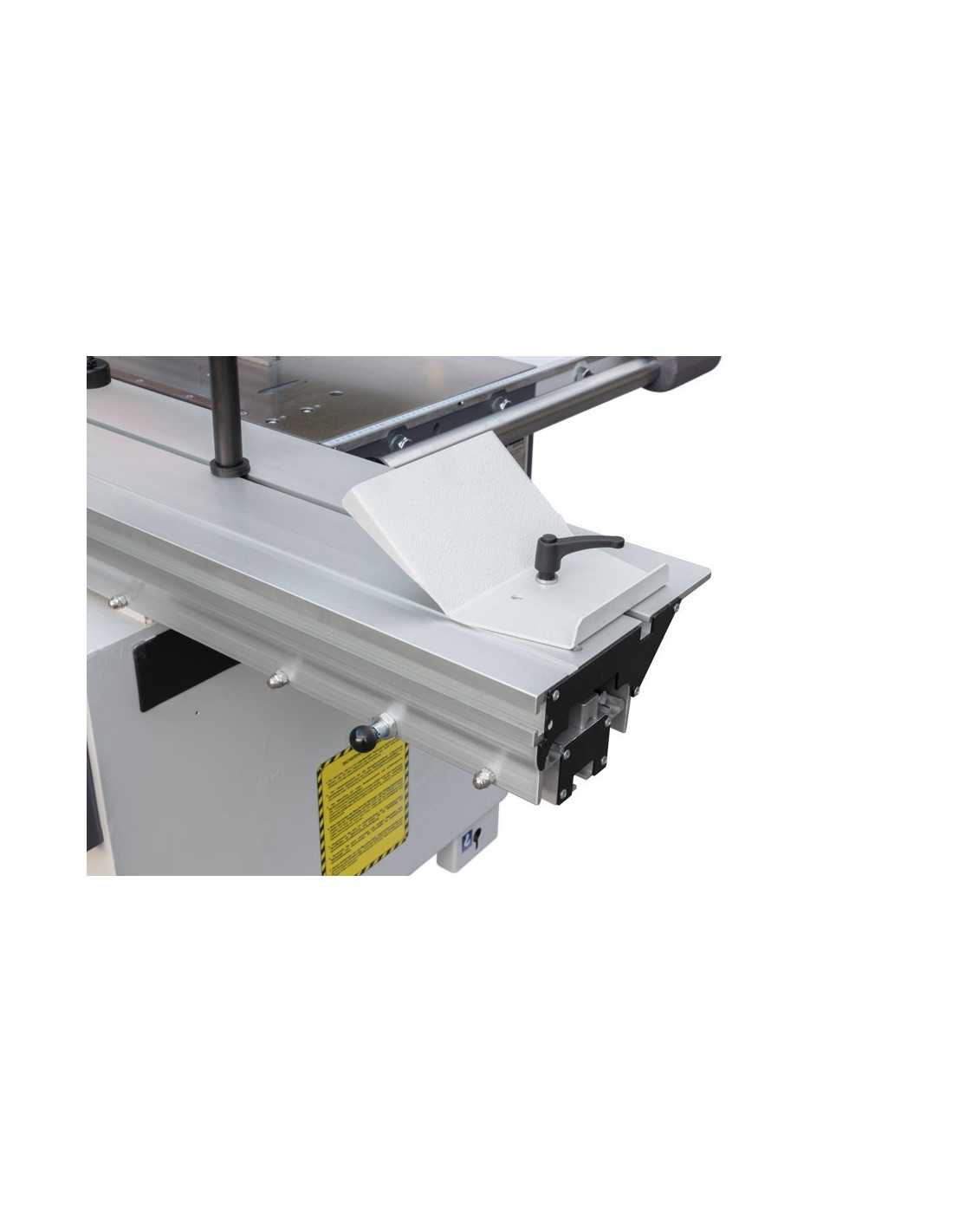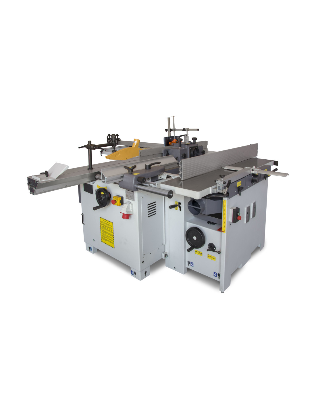 Le combiné 5 opérations COMB320E-MONO est un outil polyvalent offrant une grande capacité de sciage et de toupillage, idéal pour les ateliers à la recherche de précision et de performance. Son bâti en tôle mécano-soudée de forte épaisseur assure une robustesse à toute épreuve. Le chariot en aluminium ras de lame, glissant sur des rails trempés, garantit une précision exceptionnelle. La combinée est équipée d’une règle télescopique de 2 500 mm avec deux butées sur cadre de chariot à équarrir, permettant des ajustements précis. Elle dispose également d'un guide parallèle avec ajustement micrométrique et d'une lame de scie inclinable de 0 à 45°. La table en fonte rectifiée et la table de dégauchissage à ouverture perpendiculaire côté toupie-scie offrent un confort d'utilisation optimal. Le carter de toupillage avec guides à barrettes de sécurité et déplacement micrométrique, ainsi qu’un compteur mécanique pour la lecture de la hauteur de rabotage et de l'arbre de toupie, complètent les nombreuses fonctionnalités de cette combinée, équipée d'une toupie à arbre fixe pour des travaux encore plus précis.