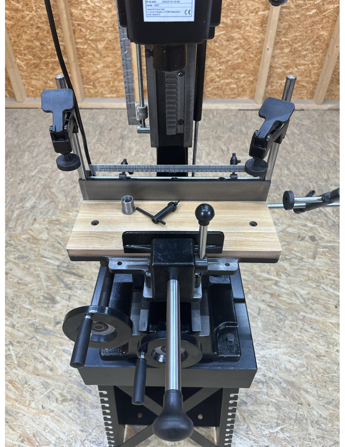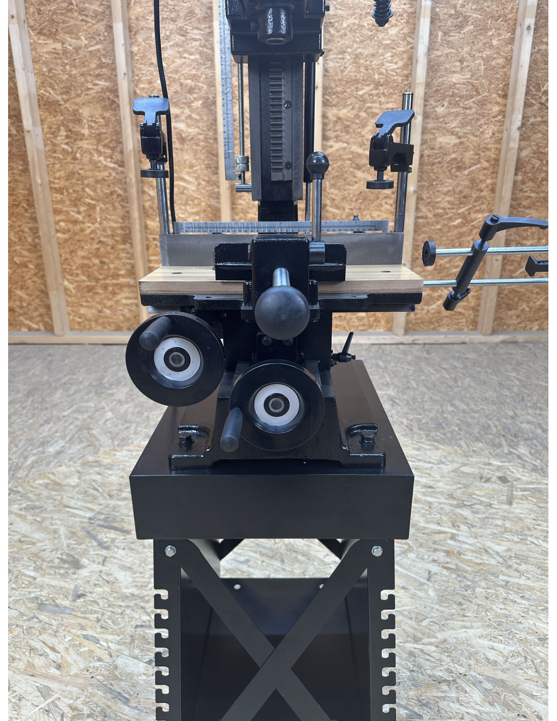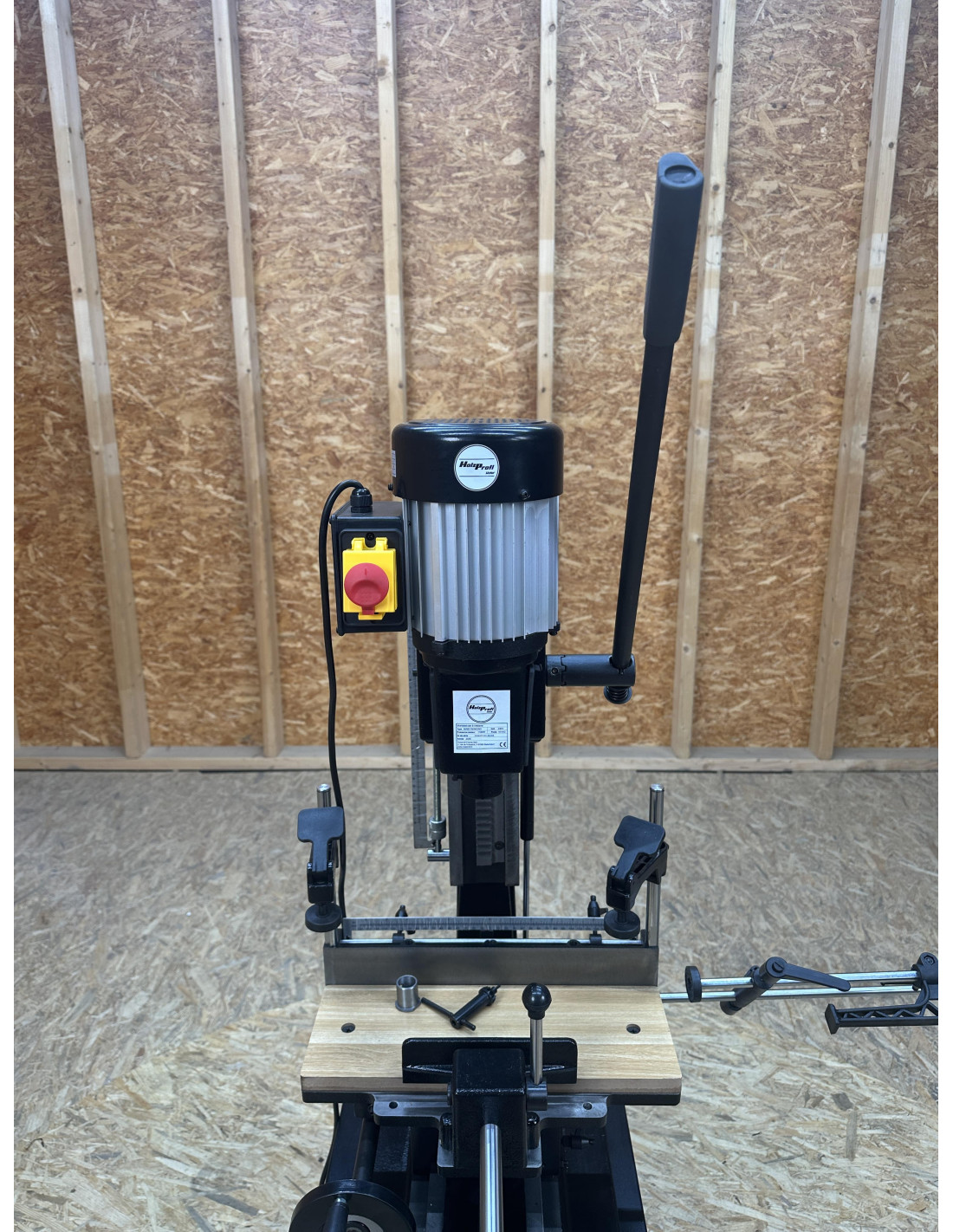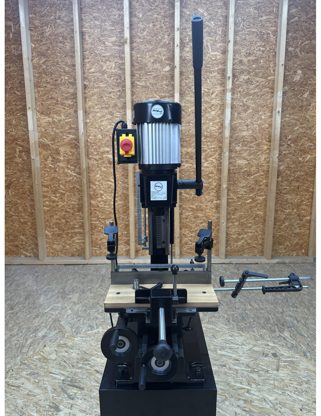 Conçue pour réaliser des assemblages précis et rapides, cette mortaiseuse à bédane carré est idéale pour les professionnels comme pour les passionnés exigeants. Sa table robuste de 400x150 mm et son guide de 55x400 mm garantissent un alignement parfait des pièces. Elle permet de mortaiser de 6 à 20 mm, avec un mandrin de 16 mm maximum et une profondeur de travail pouvant atteindre 76 mm. Grâce à sa course de perçage de 235 mm et à ses déplacements latéraux de 175 mm ainsi qu’avant/arrière de 145 mm, elle offre un confort d’utilisation et une grande polyvalence pour tous vos travaux de menuiserie.