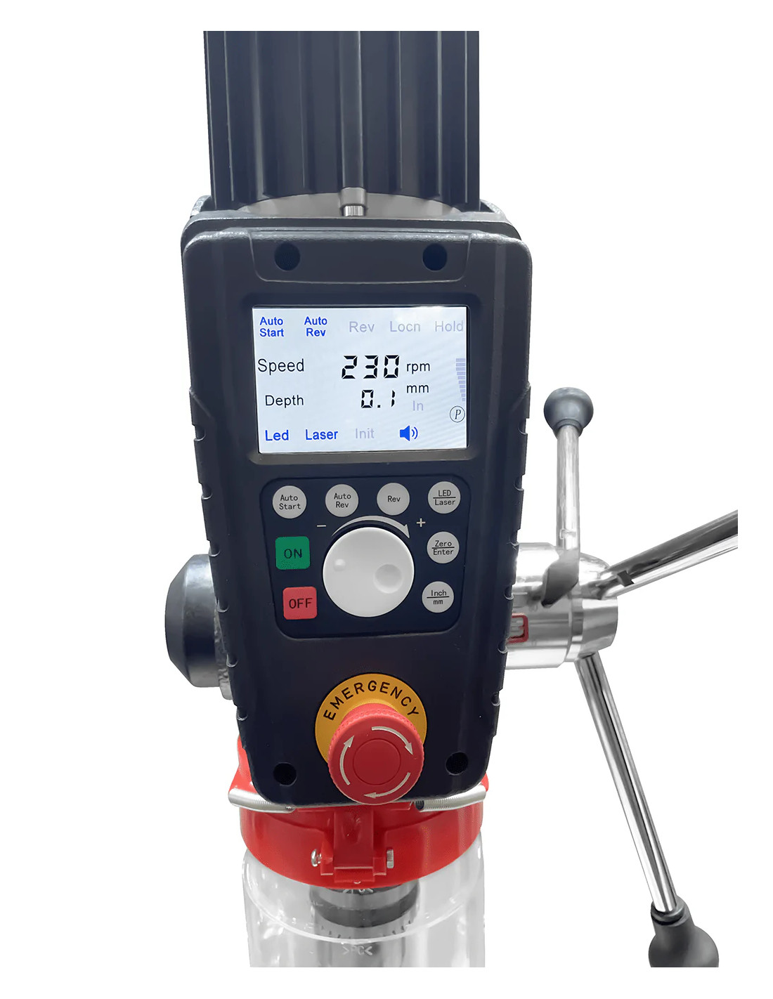 La PC4117E intègre de nombreux équipements pour améliorer la précision et la productivité : laser en croix, éclairage intégré, fonction taraudage manuel ou automatique, butée de profondeur et démarrage automatique. Son mandrin sans clé facilite les changements d’outil rapides et efficaces.