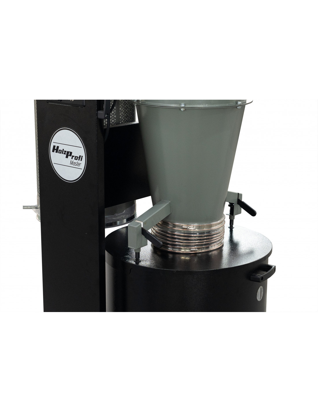 1ère filtration sous forme de cyclone qui a pour but de séparer l'air des particules de bois (copeaux, sciures) en suspension, par centrifugation