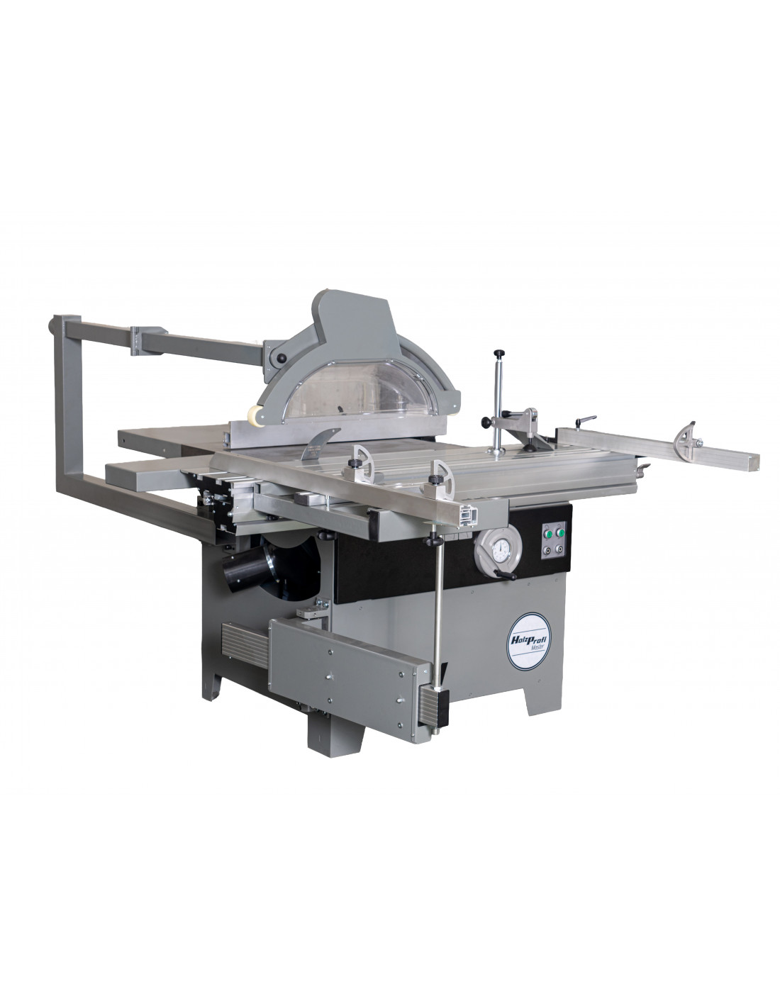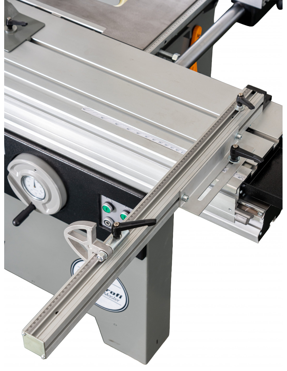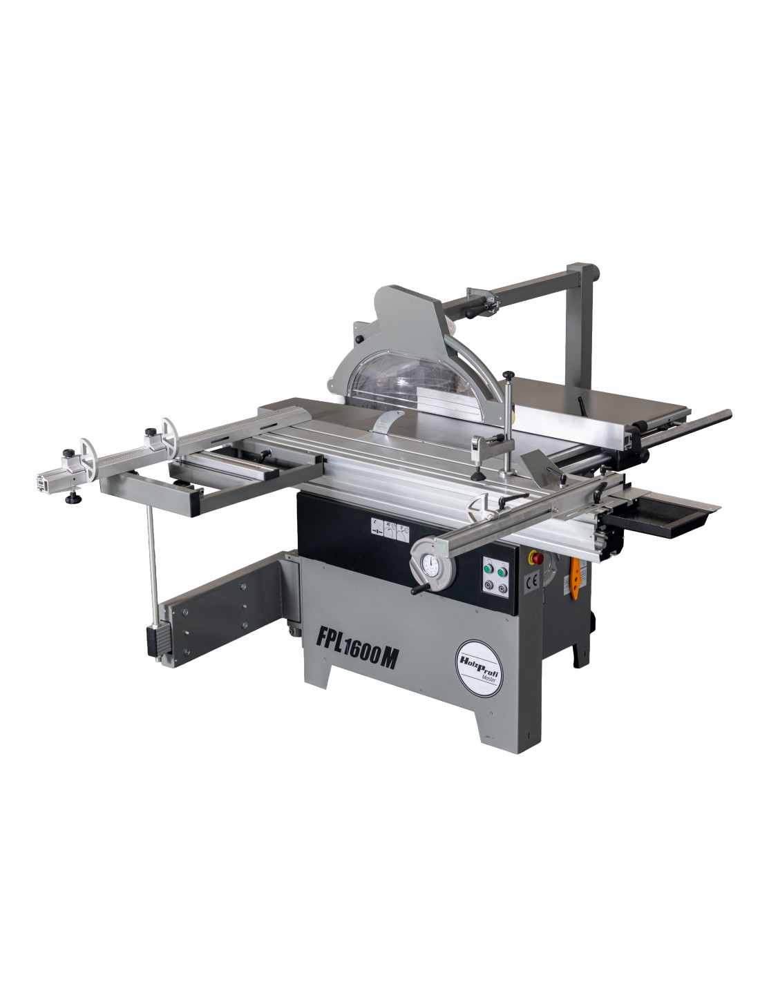 Son chariot aluminium de 1600 mm, large de 360 mm, permet la découpe précise de panneaux jusqu’à 1600 × 900 mm, tout en offrant un excellent confort de guidage. La structure robuste avec table en fonte et extensions latérales et arrière assure stabilité et précision lors des opérations de débit.