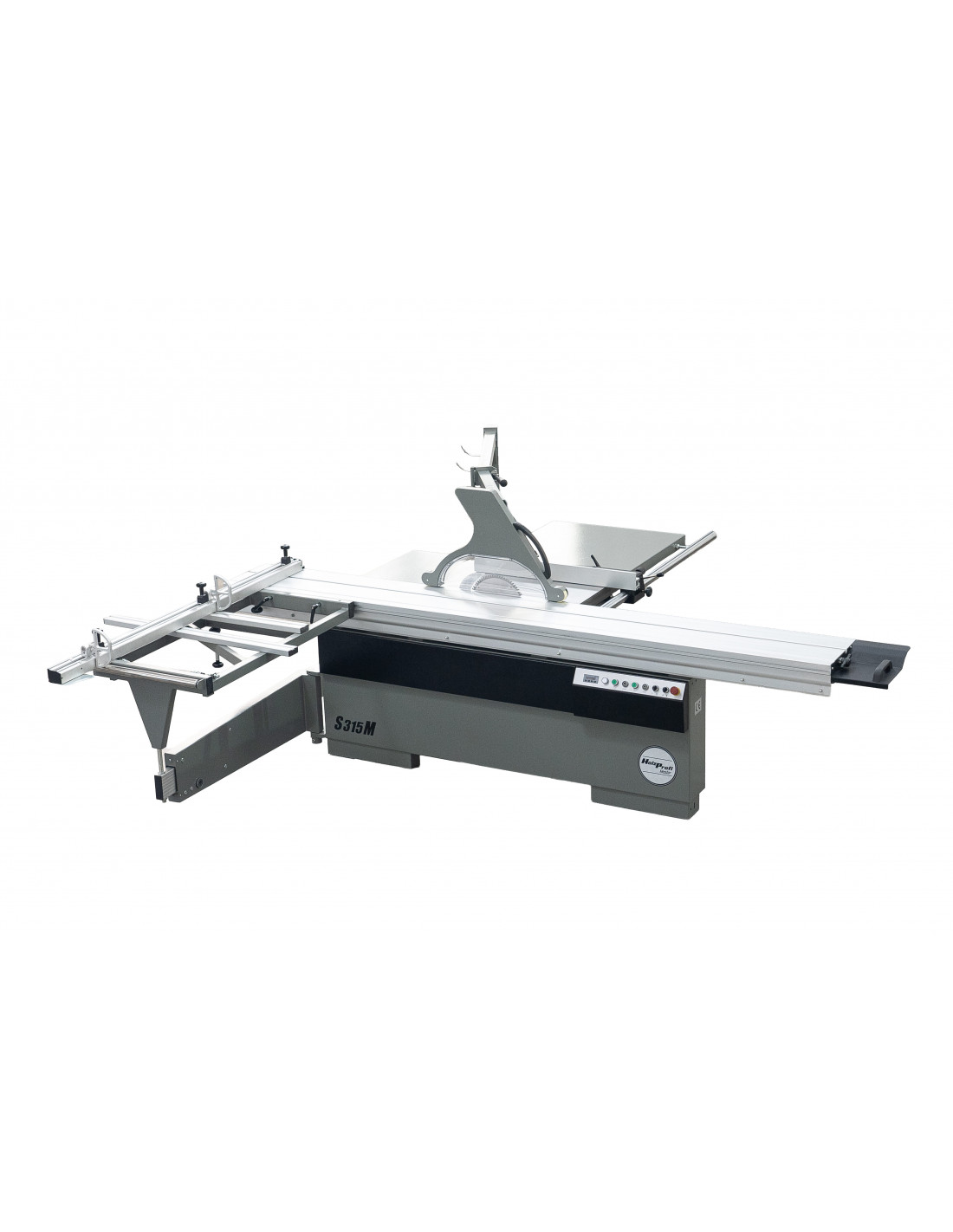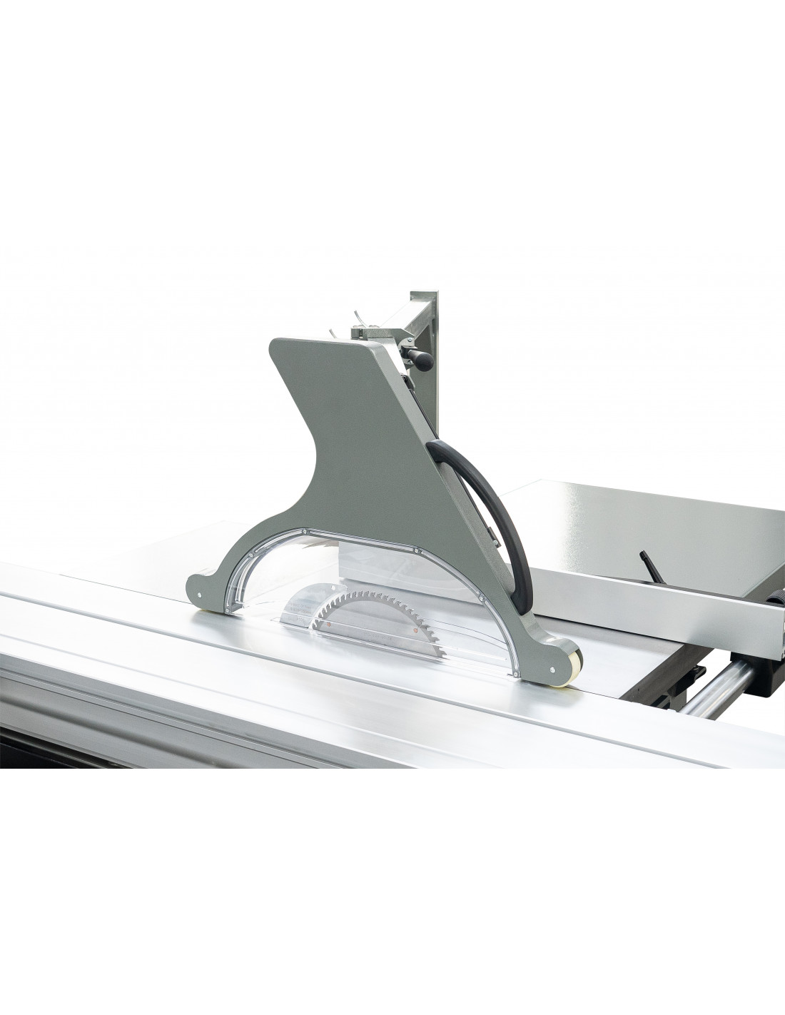 Son chariot aluminium de 3200 mm, large de 360 mm, permet le débit précis de panneaux jusqu’à 3200 × 1250 mm. La conception robuste avec table en fonte et extensions latérales et arrière assure stabilité, précision et confort de travail, même sur des pièces volumineuses.