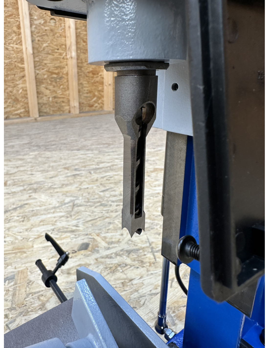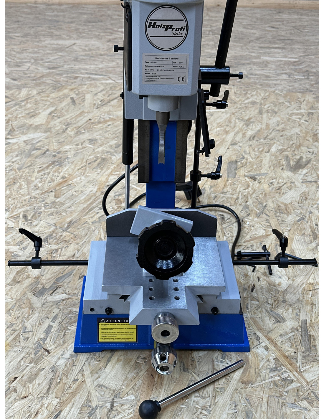 Conseil d’utilisation : vérifiez que le bédane est bien fixé et que la pièce est correctement calée sur la table avant chaque mortaisage pour garantir sécurité et précision.
