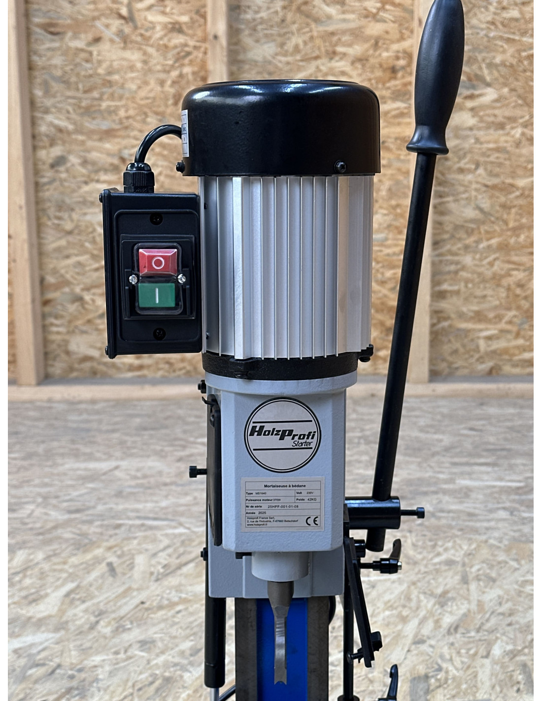 La mortaiseuse à bédane carré MS1640-MONO de la gamme Holzprofi Starter est idéale pour les bricoleurs et ateliers compacts. Elle offre des performances fiables pour le mortaisage de pièces en bois, tout en restant simple d’utilisation et compacte. La table de 180 x 157 mm assure stabilité et précision, tandis que la capacité de mortaisage de 6 à 16 mm permet de travailler différents types de bois et assemblages. Le mandrin supporte un diamètre maximum de 13 mm et la queue du bédane mesure 19 mm. Monophasée, cette machine est accessible à tous les ateliers, même sans installation triphasé