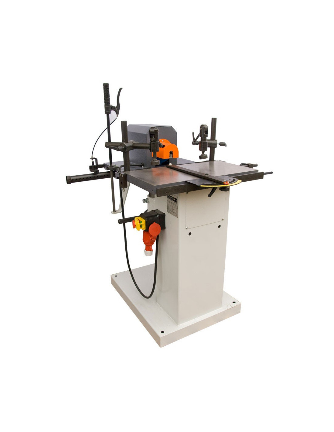 La mortaiseuse LBM200, très robuste et universelle, permet de réaliser tous les travaux de mortaisage, y compris le perçage en série. La pièce est fixée sur la table tandis que la tête de mortaisage se déplace grâce à un guidage prismatique à billes. Livrée avec guide angulaire pour une précision optimale.