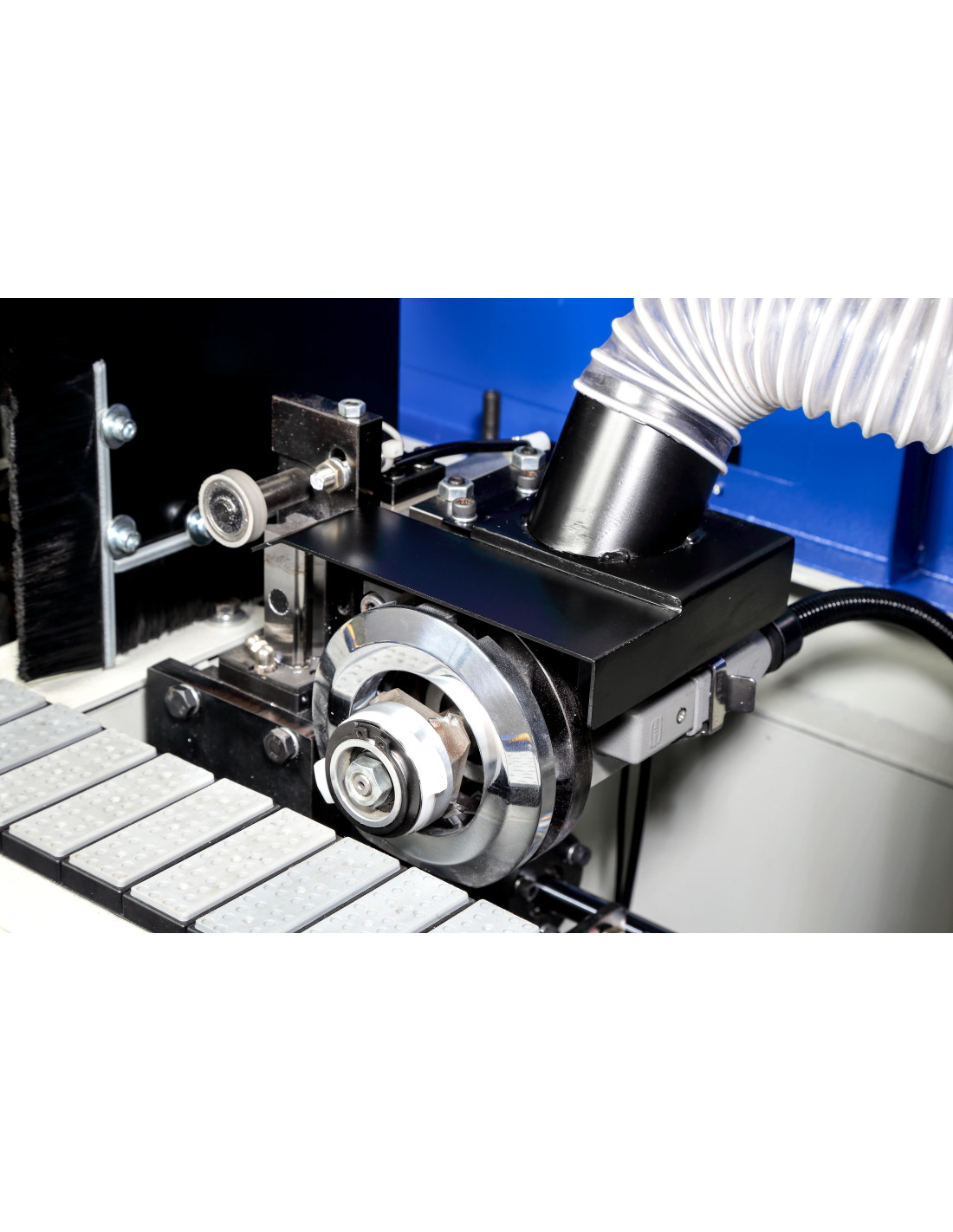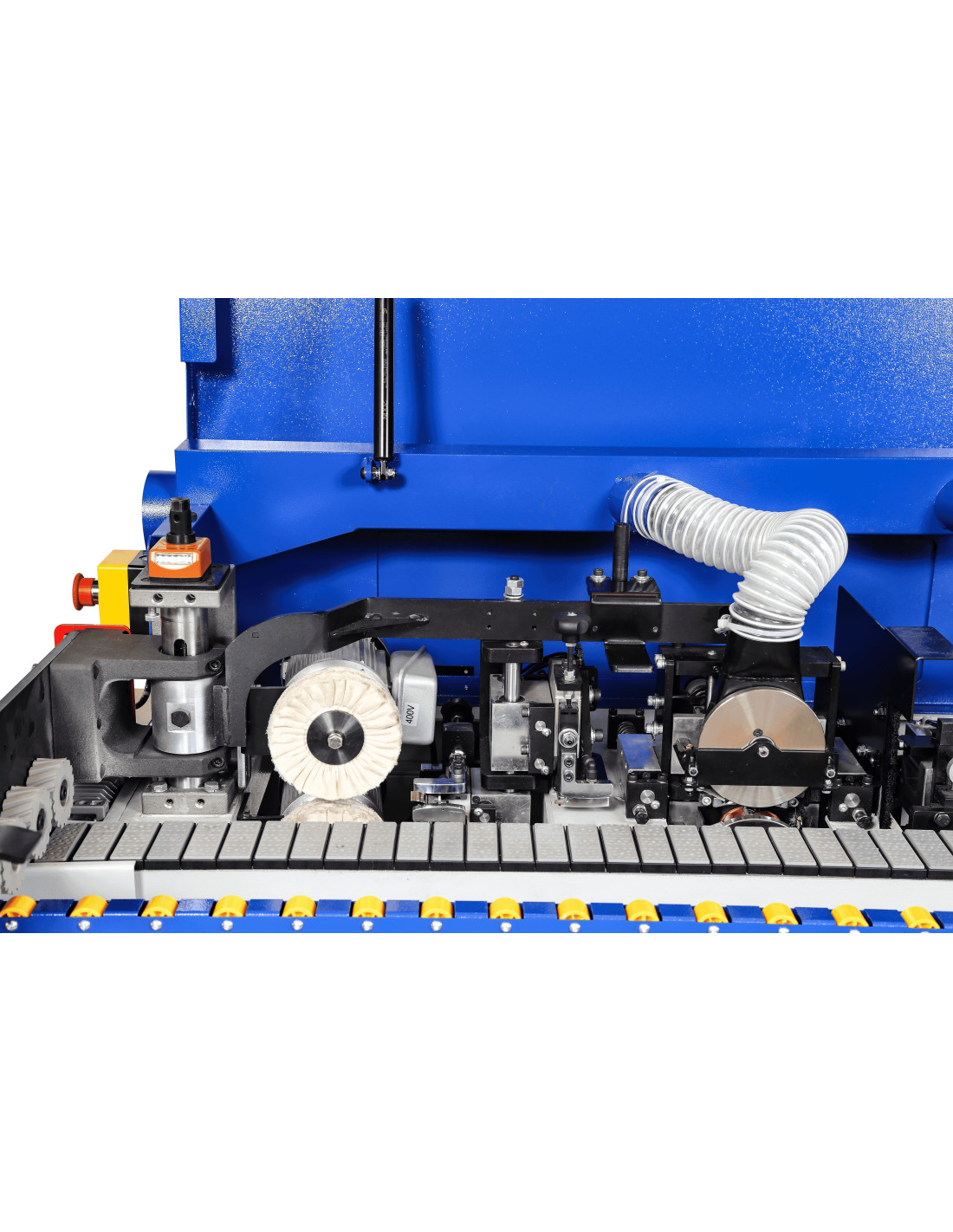 La PLC370M plaque des chants droits avec une alimentation automatique et applique de la colle directement sur les panneaux de bois et les chants plastiques (jusqu’à 3 mm en rouleaux et jusqu’à 4 mm en bandes). Équipée de pré-fraiseuses diamant, de coupe automatique en bout, d’une unité d’affleurage, de racloirs à rayon et à colle pour finition des deux côtés. Elle dispose également d’un agrégat d’arrondi frontal pour des chants parfaitement d’équerre. Avec un bac à colle téflon interchangeable de 1,2 kg, pupitre tactile, régulation électronique de température, guide d’entraînement adaptable, aspiration intégrée, et capacité à travailler des pièces de grandes dimensions avec système d’entraînement par chaîne et surveillance lumineuse de l’écart entre les pièces.