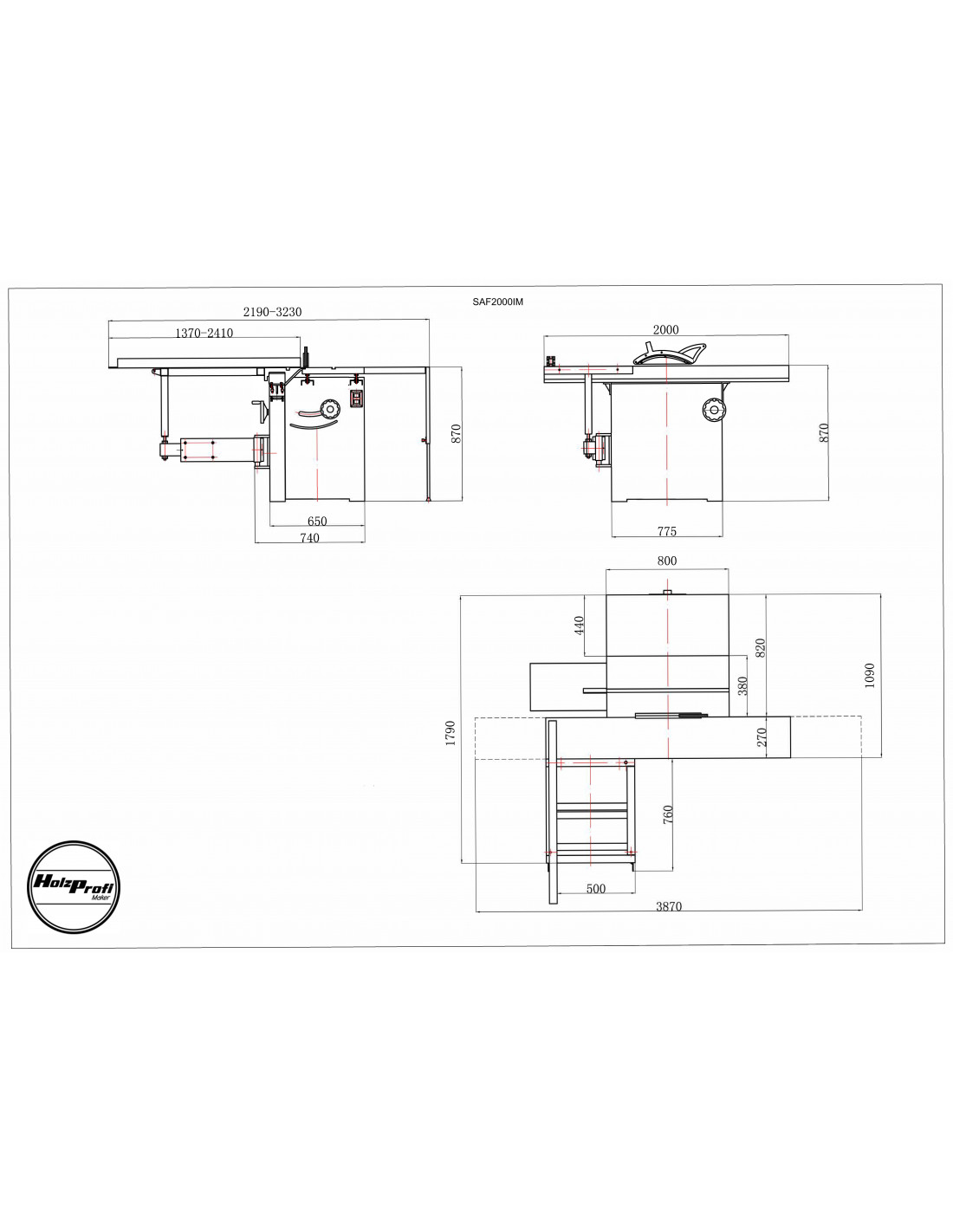 La scie à format SAF2000IM, avec une capacité de coupe de 2000 mm et dotée d'un inciseur intégré, est l'outil idéal pour les semi-professionnels du bois. Conçue pour les ateliers utilisant une alimentation monophasée, elle offre une précision et une qualité de coupe exceptionnelles, même sur des matériaux laminés ou délicats. Son inciseur prévient les éclats pour des finitions parfaites, tandis que sa construction robuste assure stabilité et sécurité. Polyvalente et performante, la SAF2000IM répond aux besoins des menuisiers et ébénistes les plus exigeants.