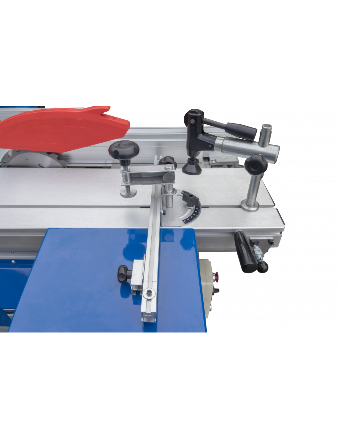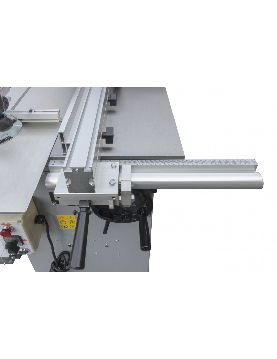La toupie, quant à elle, est équipée d’un arbre fixe de Ø 30 mm et de 130 mm de longueur, acceptant des outils de Ø 150 mm maximum dans le puits. Elle offre trois vitesses (2000/4000/6000 t/min) pour s'adapter à vos différents travaux. La machine est également équipée d'une tablette de sortie en tôle, d'un cadre de chariot, d'une règle télescopique, et d'une butée pour faciliter et sécuriser vos opérations de coupe et d'usinage. La TS1200I est l'alliée idéale pour une menuiserie précise et efficace.