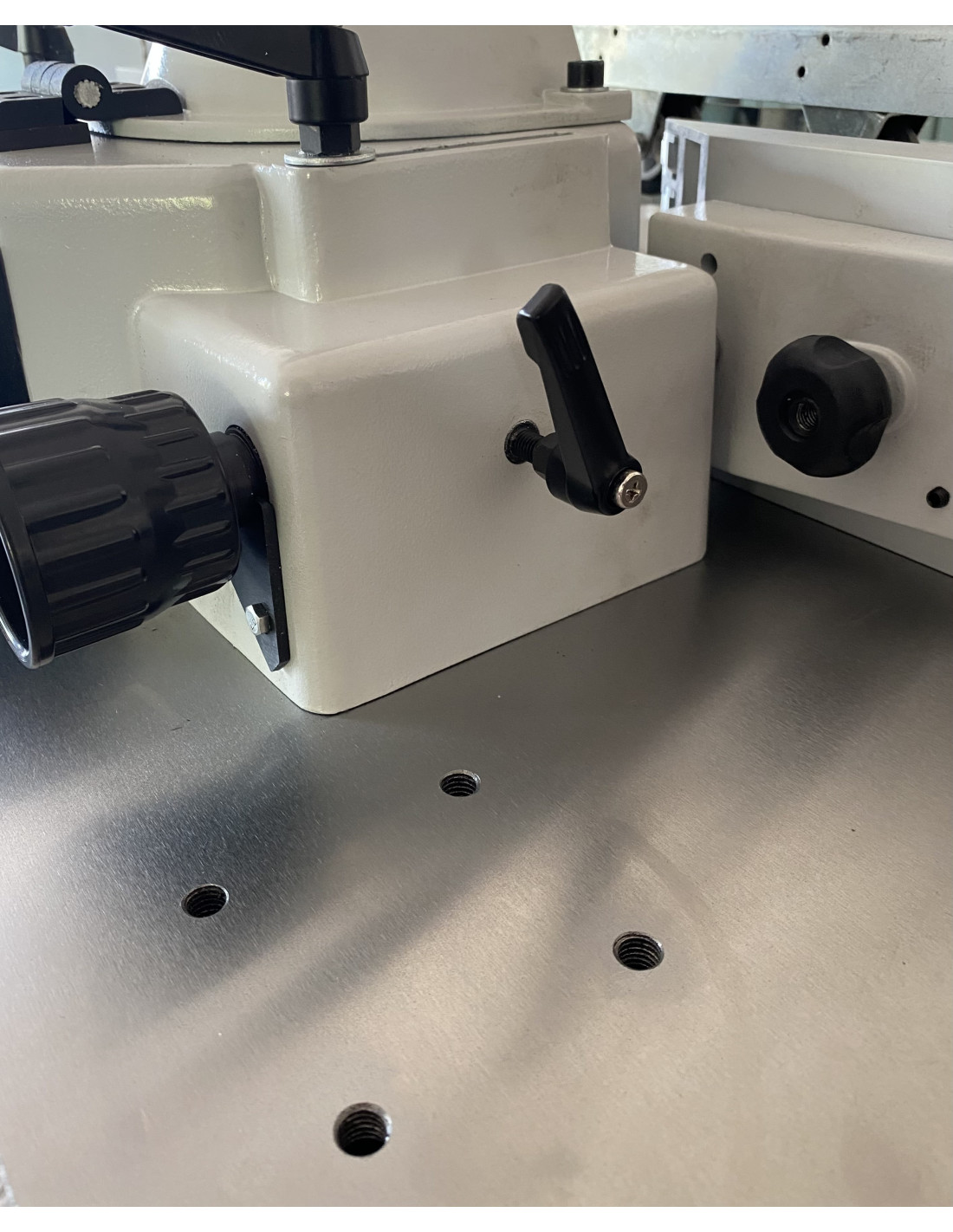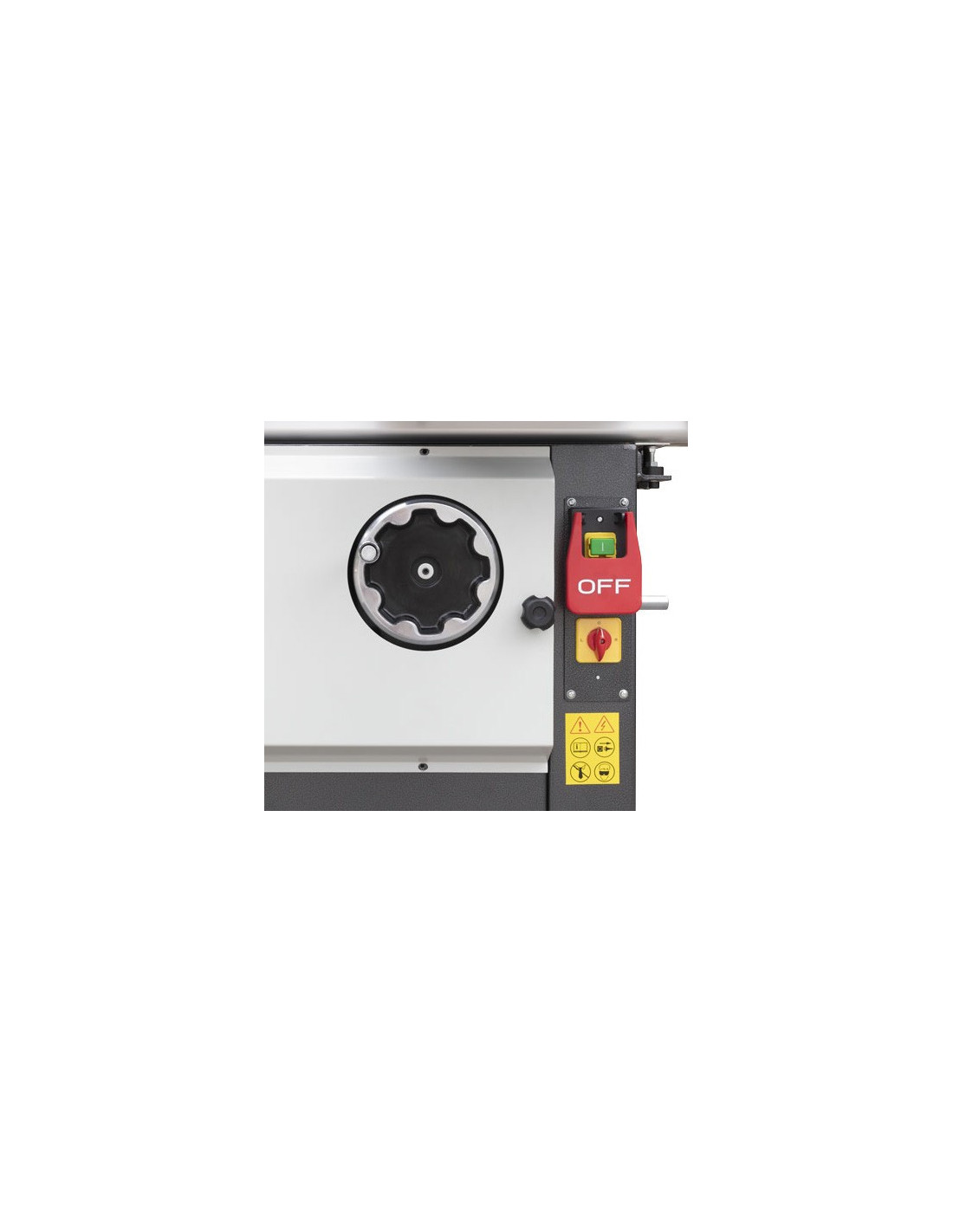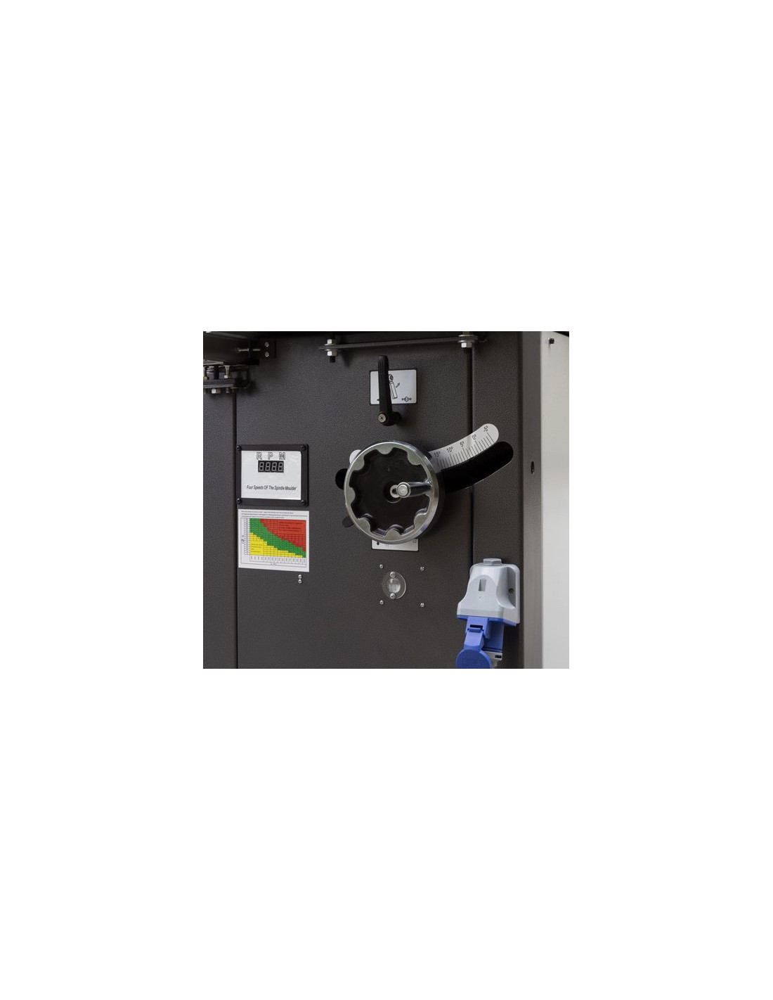 Découvrez la toupie monophasée TO1000M-MONO, équipée d'un chariot en aluminium coulissant pour une précision optimale dans tous vos travaux de menuiserie. Cette toupie inclinable de -5° à +45° offre une grande polyvalence, s’adaptant à diverses applications. Elle propose 4 vitesses (1800/3000/6000/9000 tours/min) pour répondre à vos besoins spécifiques, avec un affichage lumineux de la vitesse sélectionnée pour une utilisation simplifiée. L’arbre interchangeable de 30 mm de diamètre, avec une hauteur utile de 100 mm, est compatible avec les outils à alésage et pince ER25, et un arbre de 8 mm est disponible pour les fraises de défonceuse. Le changement de vitesses s'effectue aisément par courroie. Le chariot coulissant en aluminium, de dimensions 1000x240 mm, est doté d'un presseur excentrique, d'une règle télescopique, et d'une coupe angulaire pour des coupes précises et sécurisées. Cette toupie est idéale pour les amateurs exigeants en quête d’efficacité et de performance.