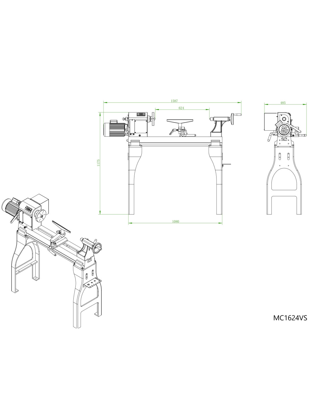 Tour à bois monophasé à variateur électronique MC1624VS