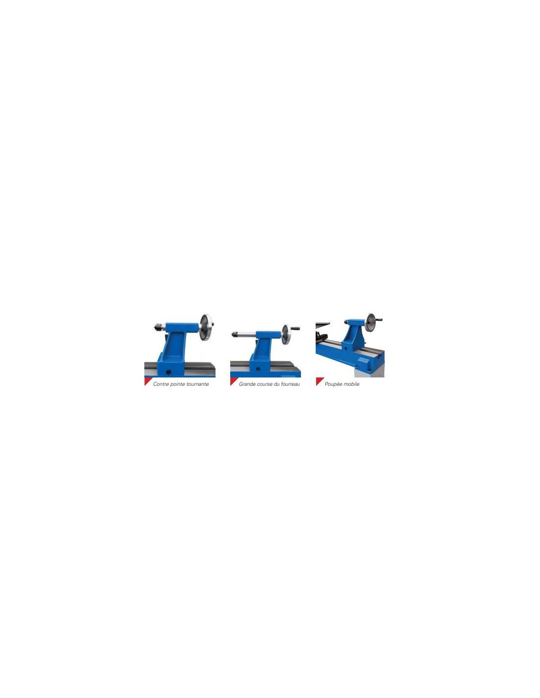 Comprend un piétement en fonte, 1 plateau Ø150mm, 1 entraîneur à griffes et contre pointe tournante